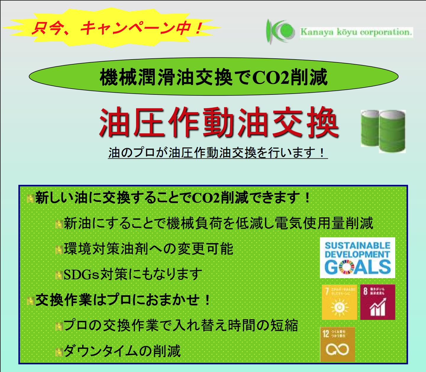 新しい油に交換することでCO2削減できます。詳しく